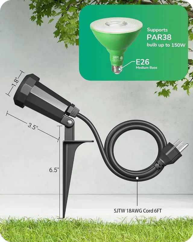 [Easy to Install] Simply use the screw and nut cap to attach the ground stake, and then place your bulb into the socket; very easy to tweak the direction of the spot lights outdoor plug in by adjusting the screw, meet your various lighting needs