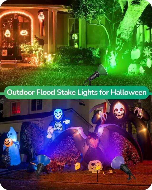 [UL Listed] Our plug in halloween outdoor spotlight have passed the wet location test, perfect for damp conditions and varying weather; ideal for yard, patio, flag, holiday decor