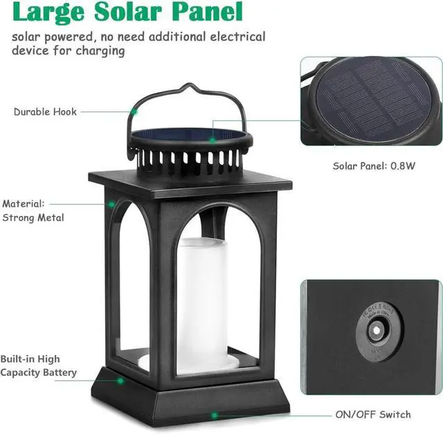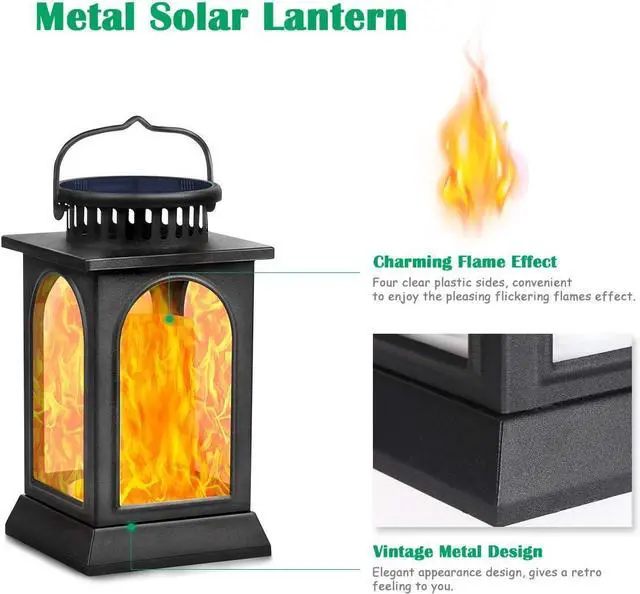 Beautiful Dancing Flames: Special dancing flame design, which looks like real flame, making this lantern more attractive; The warm yellow glow creates a welcoming ambience. This flickering flame effect solar light will be the best choice for an alternative candle