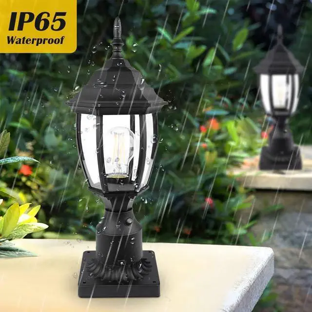 Aluminum and glass material: crafted from die-cast Aluminum and study clear glass, this outdoor post light can withstand any weather conditions, anti-rust and anti-corrosion.