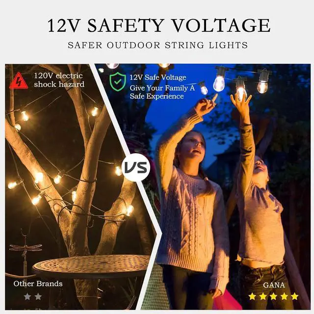 Third Layer of Protection: Carefully calibrated 60 lumens of light intensity, a 96+ CRI eye-protecting light source, ensuring your eye' s safety, especially when children look directly at or touch the bulbs. In addition, The 3000K classic color temperature creates a super cozy and romantic atmosphere.