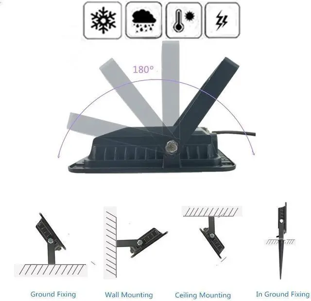 2 in 1: 1. Surface Mount, Wall mounting, Pedestal mounting, Suction mounting. 2. Stake Spike Stand, insert the light spike stand into the suitable position on ground.