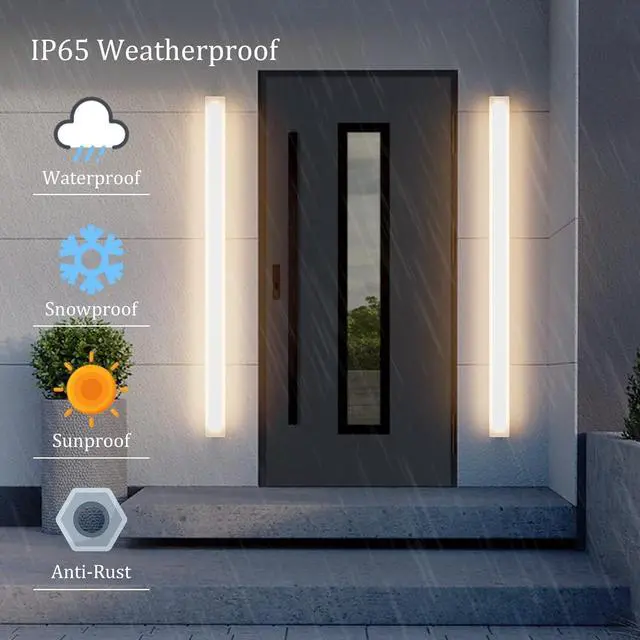 Modern DesignFeatures with frosted white acrylic frame and matte white finish, This long outdoorwall sconce adopts a stylish and simple appearance long design, which adds a modern sense to the building wall, presents a unique lighting effect when lighting, and creates a warm and warm atmosphere.