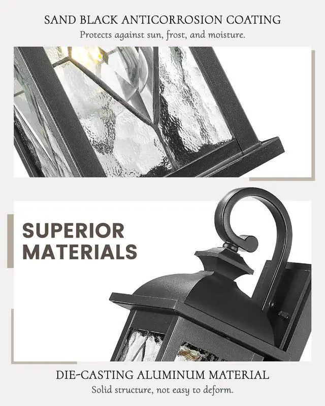 Stylish Modern Design: Featuring a classic lantern shape, this modern outdoor wall light adds an elegant touch to your exterior spaces. The water-rippled glass creates a sophisticated lighting effect, making it an attractive choice for your outdoor wall light fixtures and enhancing the ambiance of your front porch light.