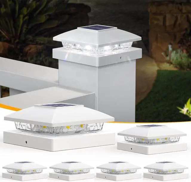 Posts: APONUO solar post cap lights measures 4.25 x 4.25 x 2.28 inches, You can mount the 4x4 post solar lights on 4x4(actual 3.5 x 3.5 ) inchs wooden post or 4x4 (actual 4x4) inches vinyl posts, You can easily mount your post top solar lights 4x4 to a fence/deck post with the included bases and screws