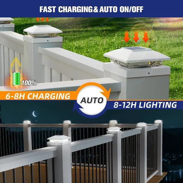 IP64 Waterproof & Resistant APONUO 4x4 solar lighted post caps are made of rust-proof PP plastic, withstands rain, snow, and heat for almost year-round outdoor use