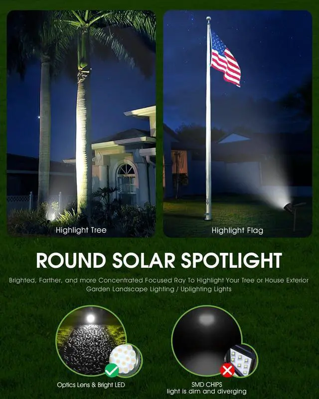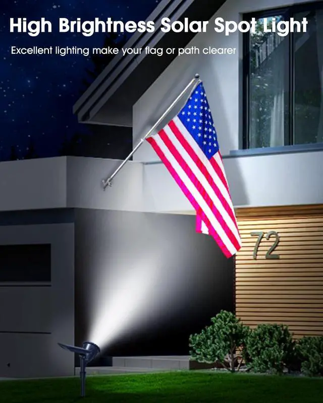 Easy Installations & No Wiring RequiredSolar powered, no need to provide additional power support, no tools required. Stick solar landscape lights into the ground with stakes, automatically turns on as the ambient light becomes insufficient. These Solar Flag Pole Lights will also be a great choice for your Independence Day decorations / 4th of july decorations, providing constant lighting for your backyard American flag on the Fourth of July.