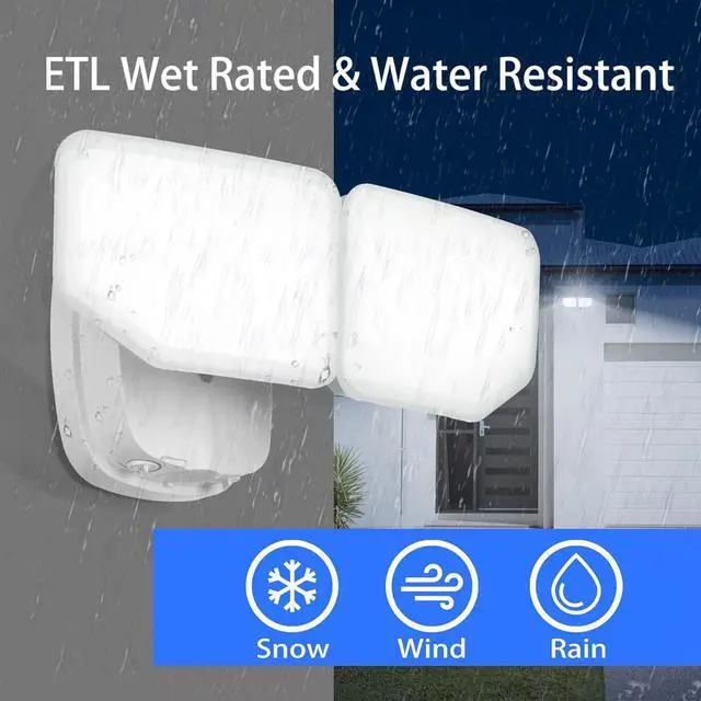 ETL Wet Rated and Wall/Eave Mount: The safety listing of this floodlight is water resistant to withstand stormy or windy weather, can be wall mounted or eave mounted with photocell sensor facing outwards. It is perfect to for your garage, yard, patio, backyard, porch, entryway, barn, shop, garden, stair or other outdoor usage.