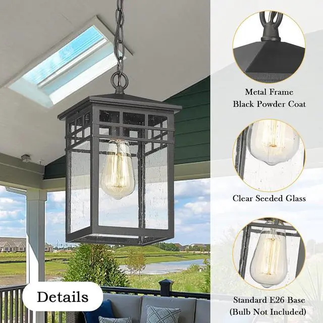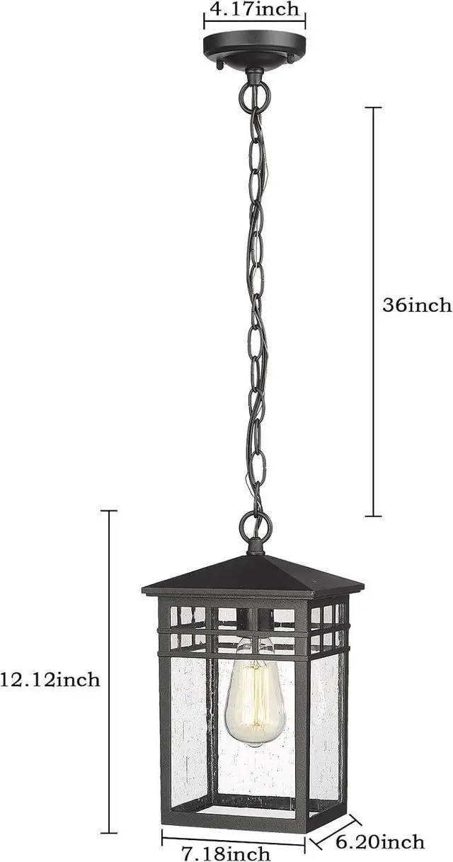 INDUSTRIAL & FARMHOUSE DESIGN: This outdoor hanging light features made of sturdy metal frame in black finish and seeded glass shade, combining vintage and modern elements, like rain drops across the glass. This exterior hanging lantern creating a beautiful light and decorative look in your house.