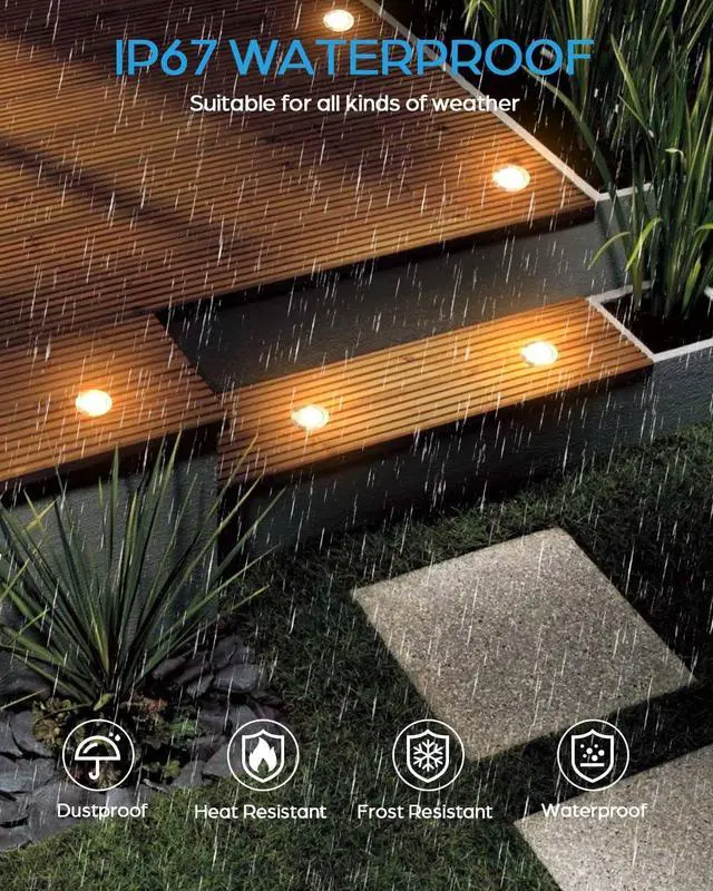 IP67 Waterproof & UL Certified Wire: HIBOITEC recessed deck lighting are made of high quality LED chip. Each low voltage deck lighting is 0.6 w. The output voltage of the transformer is 12V. They are linked by male and female connectors and are suitable for all kinds of weather. They are IP67 waterproof, frost - resistant (-4 °F - 130 °F), safe, energy saving and durable. You can set the perfect mood for any occasion. Whether it' s a quiet evening alone or a lively party, these deck lights low voltage are up to the task.
