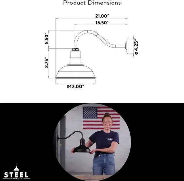 AMERICAN-MADE DURABILITY Crafted from high-quality 18-gauge American steel, this Galvanized barn light is powder-coated for rust protection, ensuring it withstands all weather conditions. Proudly made in the USA, it' s built to last on your farm, barn, or homestead.