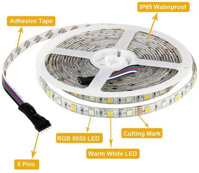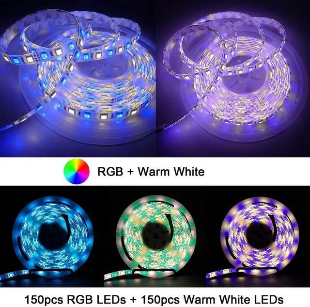 Designed with 150pcs RGB LEDs and 150pcs warm WHITE LEDs. Go work with RGBW controller can achieve multi-color gradual changing, jump changing, chasing effect or rolling effect. You also can shut down the white channel, and then you get a normal RGB strip light.