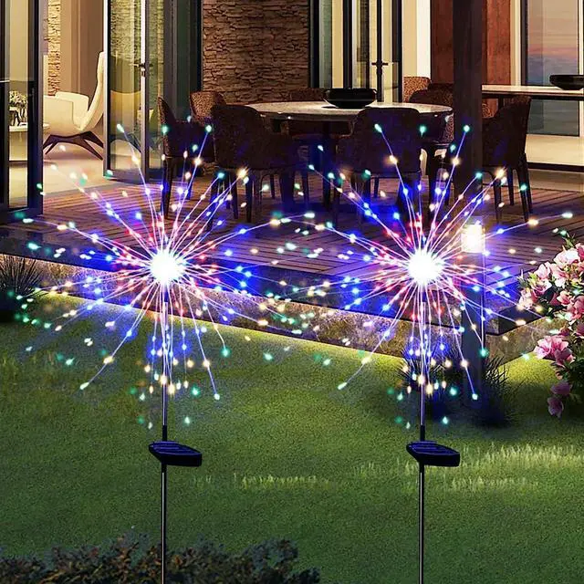 120 LED Solar Lights for Outside: Our upgraded creative solar garden fireworks lights have 120 LED beads, more beautiful and brighter than the other fireworks lights with 105 beads. You can DIY any shape as you like to creat a beautiful and colorful light spots lifelike fireworks, lighting up your beautiful garden, yard, sidewalk, etc.