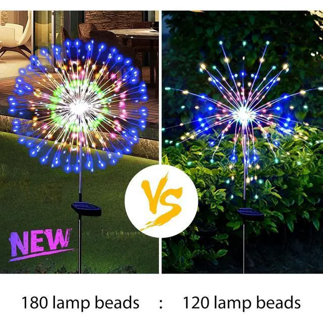 120 LED: Our upgraded creative solar garden fireworks lights have 120 LED beads, more beautiful and brighter than the other fireworks lights with 105 beads. You can DIY any shape as you like to creat a beautiful and colorful light spots lifelike fireworks, lighting up your beautiful garden, yard, sidewalk, etc.