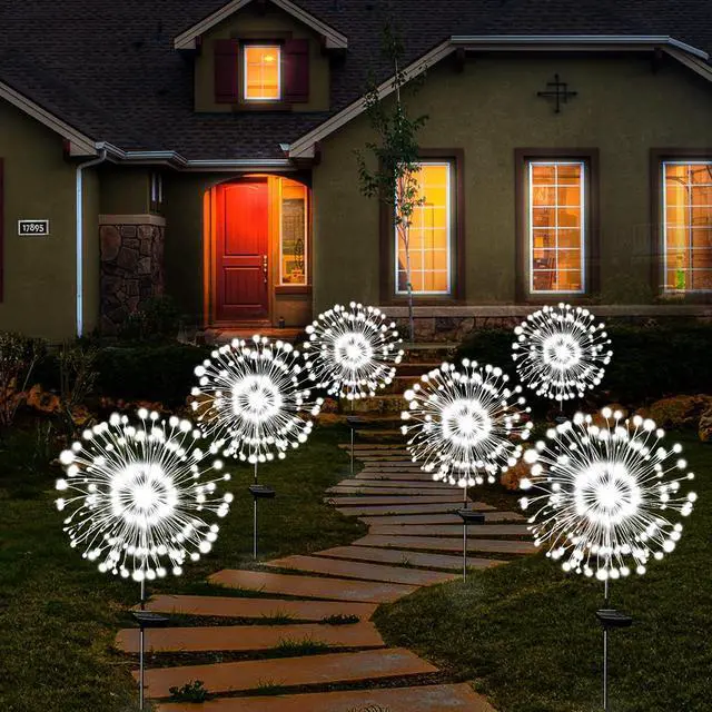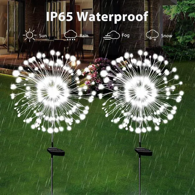 WATERPROOF SOLAR GARDEN LIGHTS: The solar garden firework light is suitable for all kinds of weather, its rubber prevents water and dust, and can be used in heavy rain and snow.