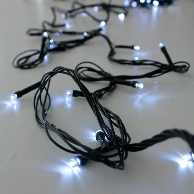 These 100 LED green wire string lights provide a unique twist on traditional festive lighting. High-quality wide-angle LED bulbs offer bright and ambient illumination while consuming up to 70 percent less power than incandescent lights. The lights remain cool to the touch for safe use. Crafted from flexible green cable wires, they can be easily wrapped, draped, or shaped to fit any décor. Powered by a standard US plug, they deliver continuous lighting and can be connected to multiple sets using the built-in receptor. These waterproof string lights are perfect for outdoor use and ideal for weddings, home décor, Christmas, parties, holidays, and other special events.