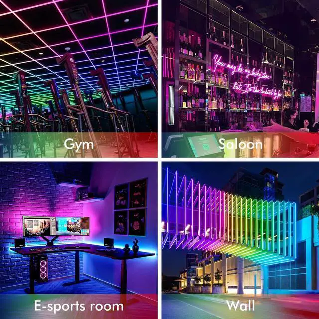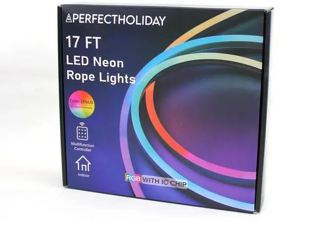 Create dynamic and colorful lighting effects with this 16ft RGBIC neon rope light. Featuring music sync functionality, the lights can change and pulse in time with sound, making them perfect for parties, events, or ambient home décor. Comes with a remote and power adapter for easy control and installation. Flexible and durable, this neon rope light can be shaped, bent, or mounted to suit any creative design.