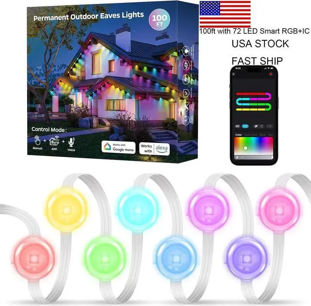 Permanent Outdoor Lights 100ft,Smart RGB+IC Eaves Lights 72 LED with App Control