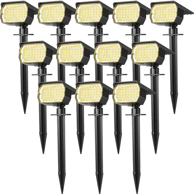 Solar Spot Lights Outdoor Waterproof IP65, 12 Pack Landscape Spotlights with 46 LEDs, 3 Modes Auto On/Off Solar Powered Flood Lights for Outside Pathway, Yard, Garden, Walkway (Warm White)