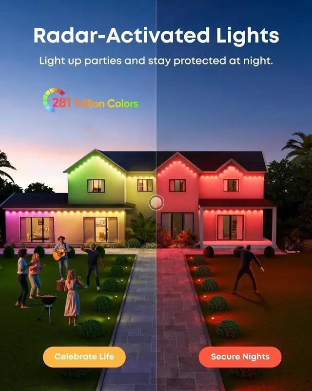 3-in-1 Lighting for Daily, Holiday, and Security: With 120°, 12 m radar coverage, this smart light strip offers precise motion detection for automatic lighting effects that follow your movement. Set customizable security alerts with flashing warnings to deter intruders.