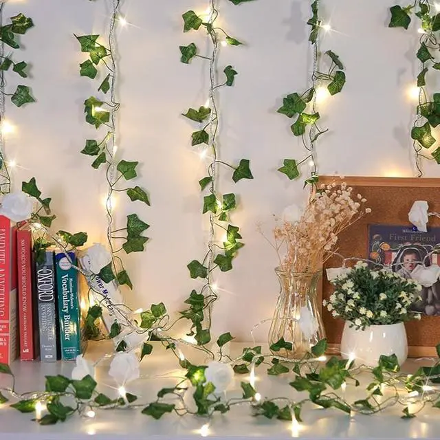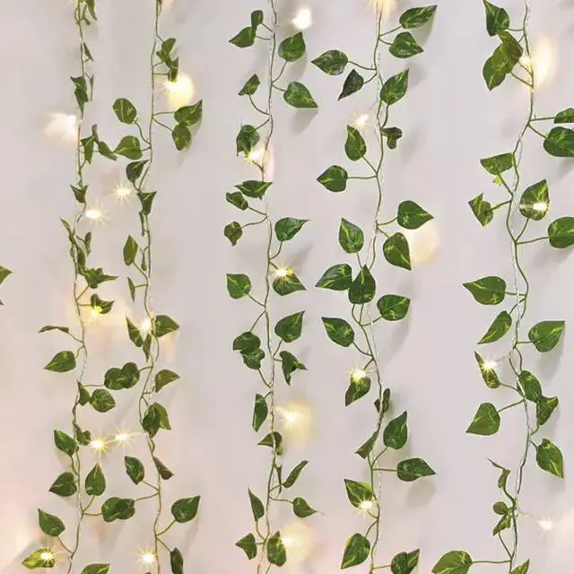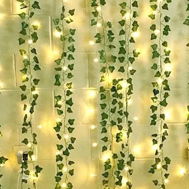 66 LED Ivy Leaf Curtain Light Battery Operated Warm White 6 Strands for Home and Party Styling