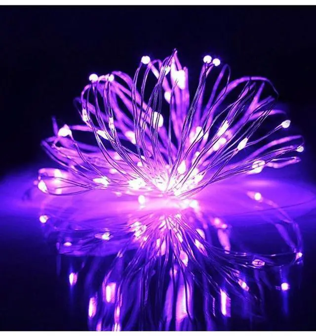 Silver copper wire dotted with 100 tiny LED lights creates a stunning glow. Available in a variety of colors, these plug-in fairy lights are perfect for lining walls, wrapping stairway railings, or adding sparkle to any space. Bendable wire allows for creative placement.