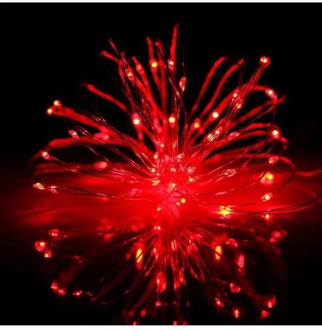 Silver copper wire dotted with 100 tiny LED lights creates a stunning glow. Available in a variety of colors, these plug-in fairy lights are perfect for lining walls, wrapping stairway railings, or adding sparkle to any space. Bendable wire allows for creative placement.