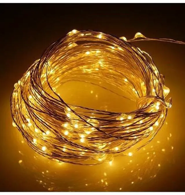 Silver copper wire dotted with 100 tiny LED lights creates a stunning glow. Available in a variety of colors, these plug-in fairy lights are perfect for lining walls, wrapping stairway railings, or adding sparkle to any space. Bendable wire allows for creative placement.