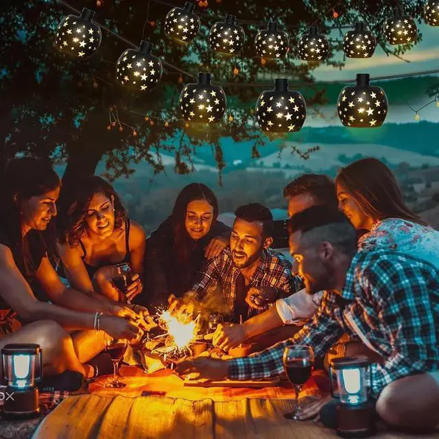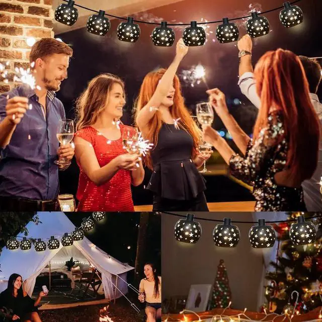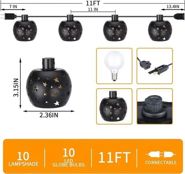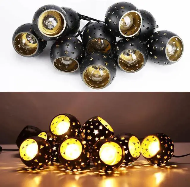 Star Decorative String LightsThese decorative string lights comes with 10 led G40 bulbs, and the golden light through the hollow-out style lampshade to create a warm and romantic atmosphere