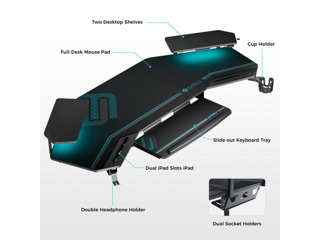 BUILT-IN ACCESSORIES: Thanks to the shelves, cup holder, headphone hook, mobile device slots, and keyboard tray, you can customize your setup to fit your exact needs.