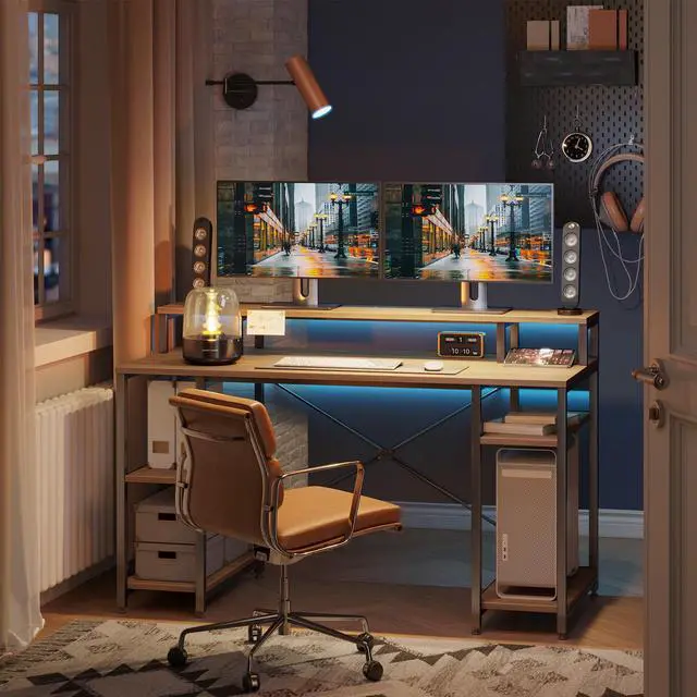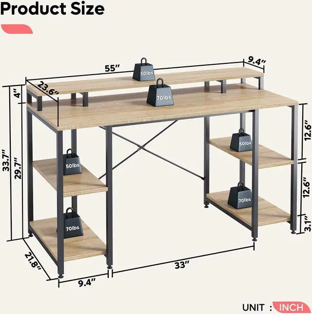? FLEXIBLE SHELVES? The shelves under the desk could be adjusted to different heights according to your needs to storage CPU tower, printer and books.