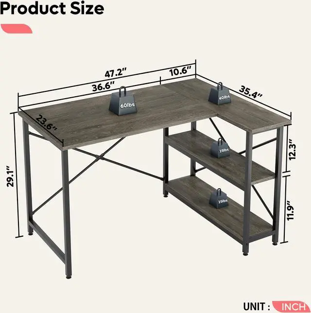 Small L Shaped Design - Special L shaped design make this computer desk different from other desks, this one can offer more saving spaces, you can take full advantage of desk space and get files and books within reach. More importantly, the unique appearance makes your home office more lively.