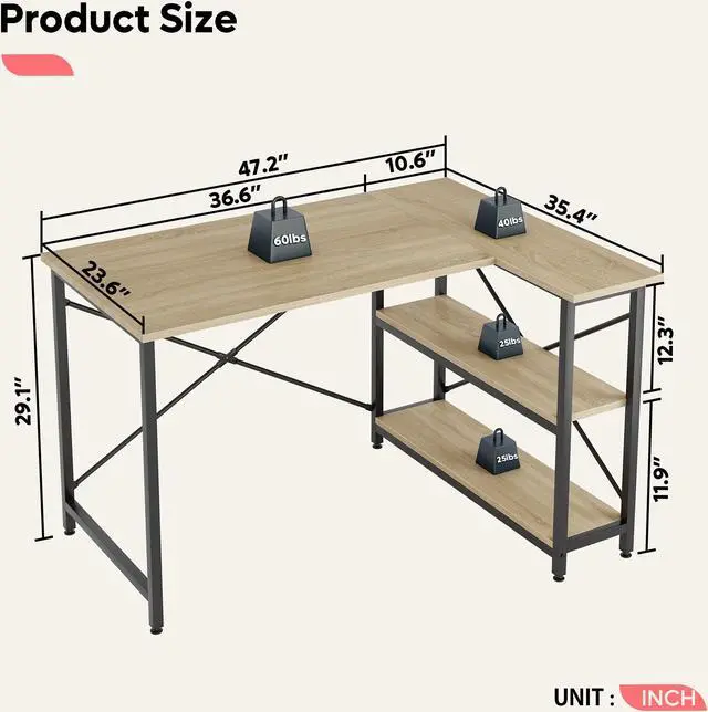 Small L Shaped Design - Special L shaped design make this computer desk different from other desks, this one can offer more saving spaces, you can take full advantage of desk space and get files and books within reach. More importantly, the unique appearance makes your home office more lively.