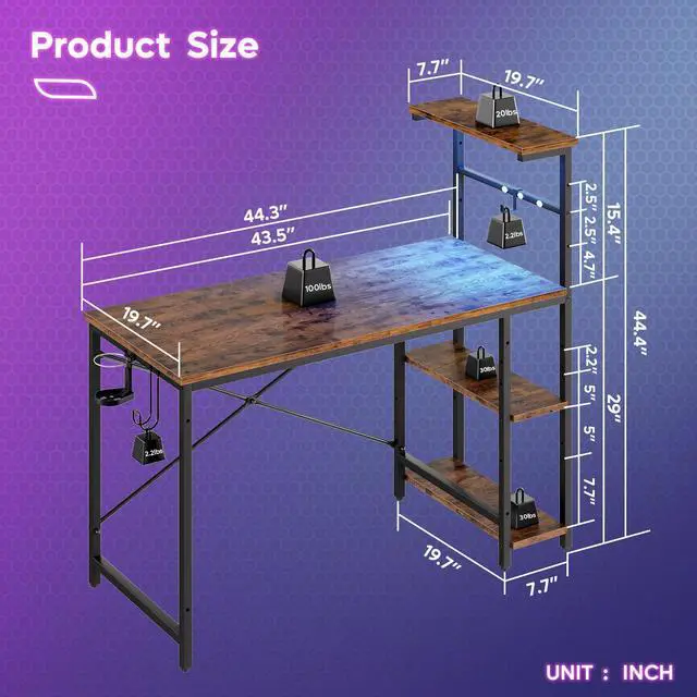 Upgrade your gaming setup with the Bestier 44" RGB LED Gaming Desk a perfect blend of style, functionality, and space-saving design. Whether you are battling online, streaming, or working from home, this desk creates the ultimate immersive experience.