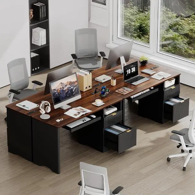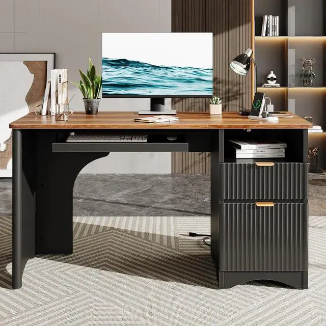Upgrade your home or office workspace with this modern fluted-panel office desk, combining elegant design with practical functionality. The vertically grooved drawer fronts add a sophisticated, contemporary touch, making the desk not just a workspacebut a visual centerpiece.