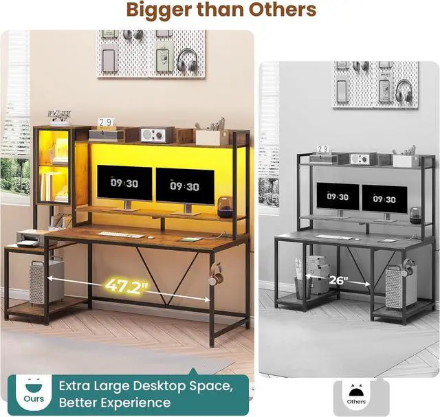 Spacious WorkspaceThis 60-inch extra-long gaming table comes with a separate monitor stand and printer stand for ample desktop storage, ensuring a spacious operating area for you whether you're using it for a home office or gaming.