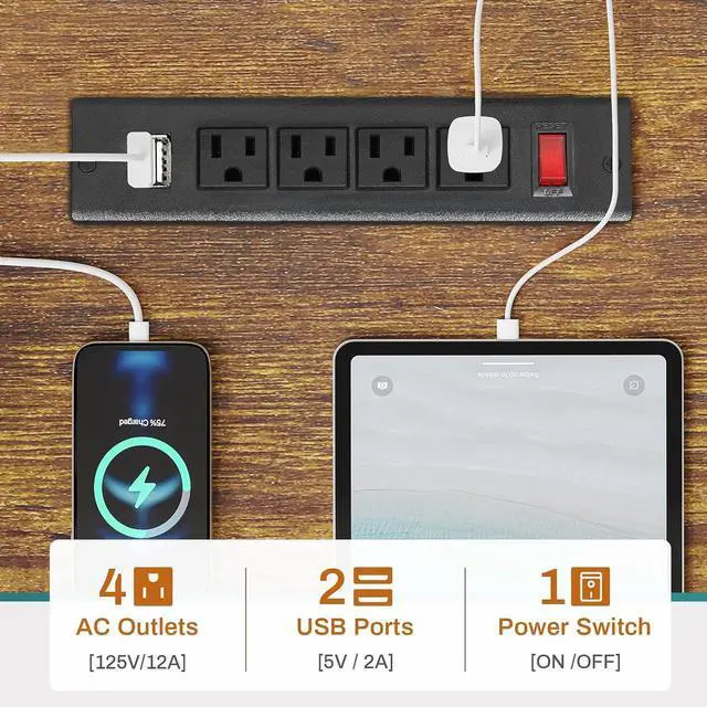 Secure High-Capacity Charging Station- The computer desk is equipped with four power sockets and two USB ports, meeting the power supply demands of multiple devices. It also features a power switch key for one-touch power-off, ensuring safe electricity usage and improving energy efficiency.