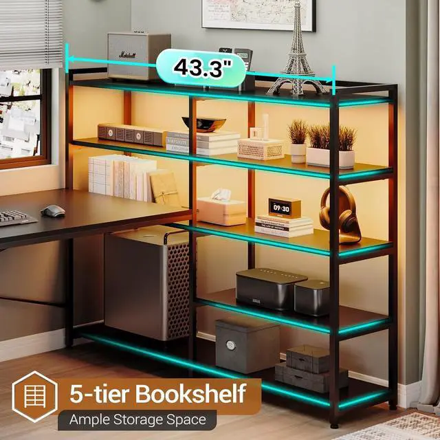 Coming with 3 fabric drawers, 5-tier storage shelves with powerful storage space. The 5-tier storage can place files, books, leaving spacious space for writing, paperwork and other home office activities. This l shaped desk provides enough room to study, work or other office activities.Our charging station includes 4-Outlet & 2 USB Ports to provide power for up to 6 devices simultaneously. Also includes an on-off switch, thanks to the on-off switch, one-button power off to ensure safe electricity use, which strengthens security. Power outlet allows you to charge cell phones, tablets, notebooks, etc.The gaming desk comes with RGB LED light, remote control via APP, Over 60000 colors, and 29 flashing modes for you to choose from. Led lights with music sync function, built-in sensitivity adjustable mic, led light color will change with the rhythm of the sound and music. This l-shaped gaming desk can help you play games in your home offices.