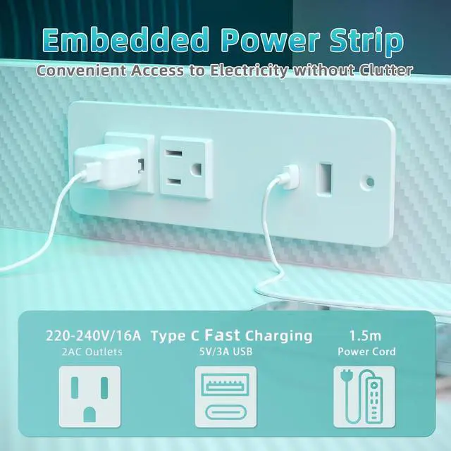 Fast Charging Power Outlet: This power outlet features two sockets, one USB port, and one Type-C fast charging port. It allows you to conveniently charge your phone, tablet, and other electronic devices while keeping your desktop neat and organized.