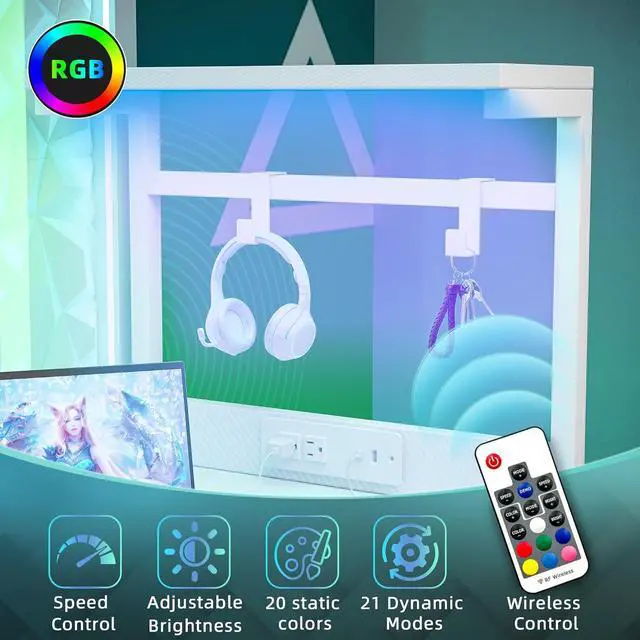 LED Light Strip Included: Our desk comes with an integrated LED light strip, offering remote and app control for brightness, speed, and color adjustments. This feature enhances your workspace ambiance, providing dynamic lighting to match your mood and activities, perfect for gaming or working.