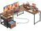 Solid Construction for Everyday UseMade with durable particle board and reinforced steel tubing, this large desk withstands long time. The crossbar on the back adds extra stability, while the open space beneath the side desk gives your legs room to stretch, or even place a small pet bed for your furry coworker. The desktop is made of FSC-Certified wood
