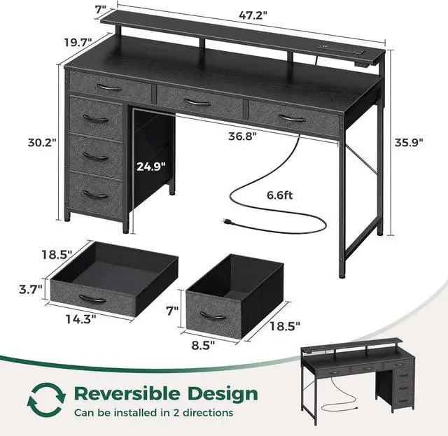 Computer Desk with 6 Drawers6 foldable and easy-to-pull fabric drawers. These drawers offer divided and private storage space, perfect for keeping your files, stationery, and other office supplies neatly organized. The generous storage capacity allows you to keep your workspace tidy and efficient