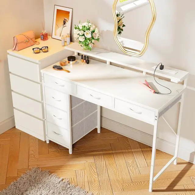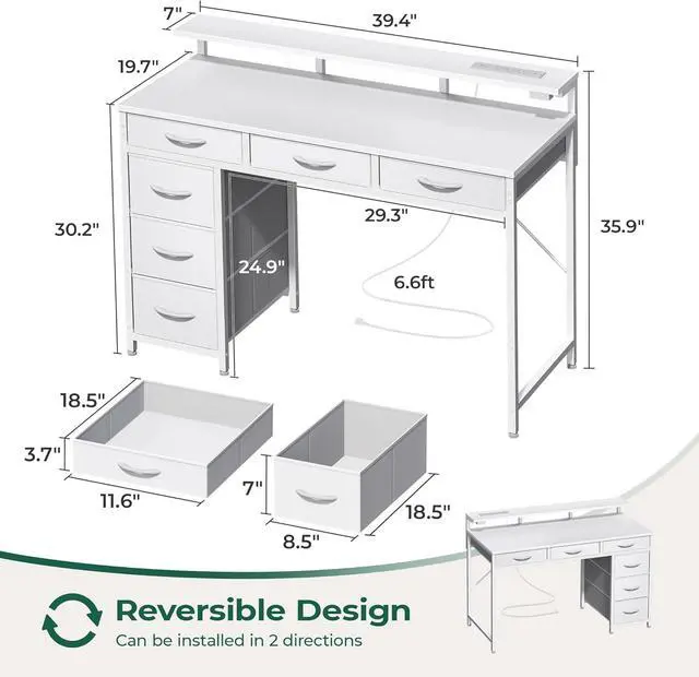 Computer Desk with 6 Drawers6 foldable and easy-to-pull fabric drawers. These drawers offer divided and private storage space, perfect for keeping your files, stationery, and other office supplies neatly organized. The generous storage capacity allows you to keep your workspace tidy and efficient