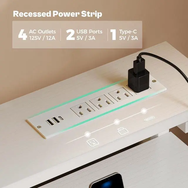 Office Desk with Power OutletsOur work desk is equipped with 4 standard plug outlets, 2 USB ports, and 1 Type-C port. Whether you need to charge your phone, power your gaming gear, or connect other office devices, this gaming table desk provides all the outlets you need, neatly organized to avoid cluttered wires