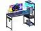 Casaottima 48 Inch Gaming Desk with Storage & LED Lights, Reversible Computer Desk with Display Shelves & Fabric Drawer, Modern Gamer Desk Table with Side Headphone Hook, Carbon Fiber Black