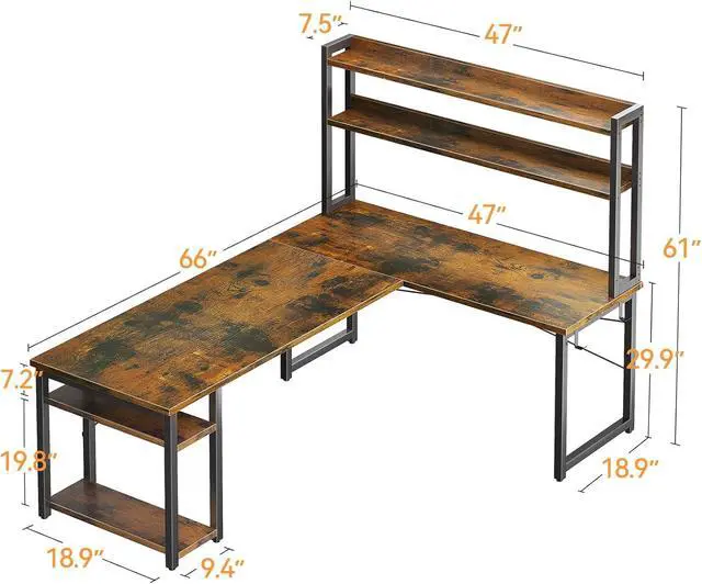• Full of Space: This l shaped desk provides enough space for your computers, laptops, keyboard, books, CPU stand and daily equipments. You will get plenty of room for storage and sitting.