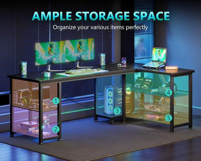 Ample Storage SpaceCasaottima L-shaped desk provides 4-tier open metal grid shelves and 1 CPU stand. Store frequently used items and decor on the open shelves.Store frequently used items and decorations. It not only makes the items easy to access but also keeps the desktop tidy.