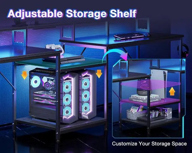 Large Workspace & Powerful Storage FunctionThe 97.6"(L) x 19.7"(D) desktop is big enough to accommodate your monitor, keyboard and other items without sacrificing your workspace and desktop neatness. The height-adjustable shelves can not only serve as a storage rack to keep your office supplies, electronics, ornaments , etc. organized and easily accessible, but also a computer tower stand to meet your different storage needs for home or office.