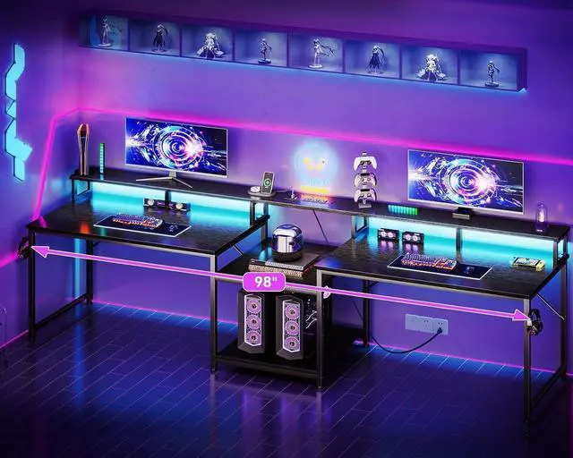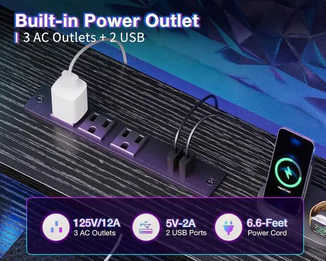 USB Charging Ports & Power OutletsEquipped with 3 power outlets and 2 USB charging ports, the 2 person gaming desk can simultaneously power 5 electronic devices like smartphones, gaming gear and Bluetooth devices when you are working, studying or playing games. Let this dual desk make your life more convenient.