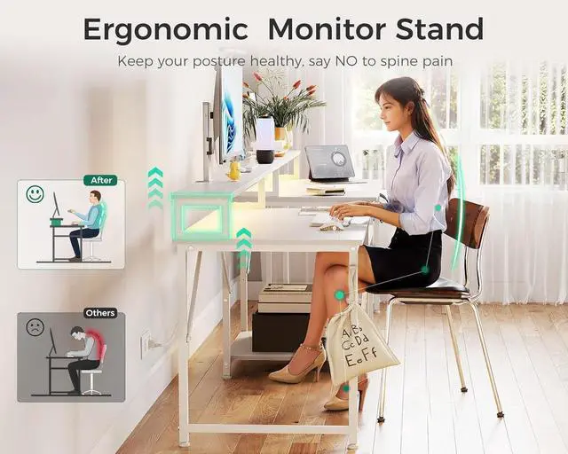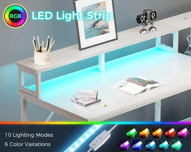 Ergonomic Full Monitor Stand with Cool LED StripThe monitor stand can effortlessly raise 2 monitors to a suitable height, giving you a more ergonomic viewing angle and reducing your strain. It also creates extra desktop storage space for a neater desktop. The LED strip contains 10 static colors, 10 dynamic modes, 6 brightness grades and memory function . You can easily switch the lights to the mode you want to create a comfortable work, study and gaming space with a great atmosphere.